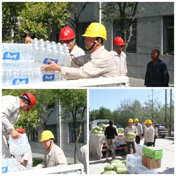 高溫如虎,關愛似海。集團公司黨委副書記尚興和其他領導把西瓜、飲料、茶葉等慰問品送到一線員工手中,送上集團公司黨委對一線員工的深切關愛,員工們對集團公司黨委的深切關懷深表感謝,戰(zhàn)高溫、斗酷暑、保安全的信心倍增。